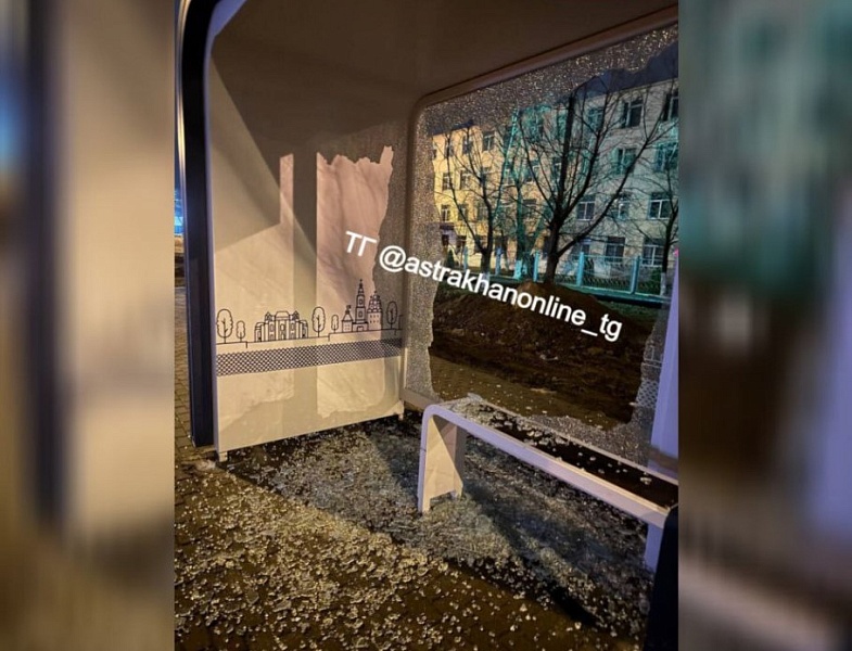 Фото с разбитым вдребезги стеклом опубликовали в ТГ-канале «Астрахань online». Сообщается, что разгромленный павильон находится на ул. Куликова, 40а.