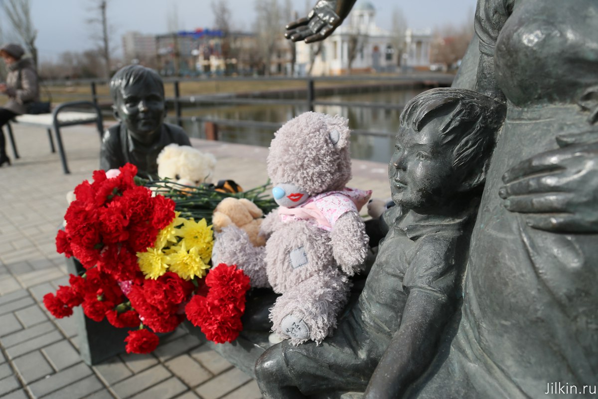 Стихийным мемориалом в Астрахани стал памятник Семьи около Лебединого озера.