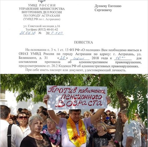 Выразить свое "фи" законопроекту о повышении пенсионного возраста астраханцев позвали эсеры. Правда, справедливорос Евгений Дунаев, общавшийся с пришедшими астраханцами и журналистами и даже недолго демонстрировавший плакат, от причастности к организации митинга открестился.Но ничто не земле не проходит бесследно. Вот и пусть недолгая, но демонстрация транспаранта обернулась для Евгения Сергеевича неприятными последствиями.