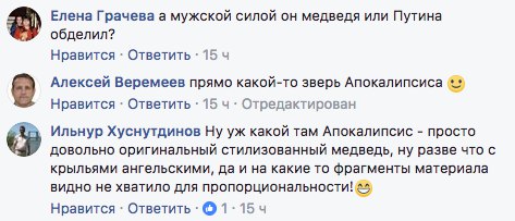 Больше всего пользователей соцсетей интересовало, в чём именно, по замыслу автора, прячется душа. И вправду, оценить по достоинству химеру с головой Владимира Путина, телом медведя и крыльями ангела (?) смогли не все.
