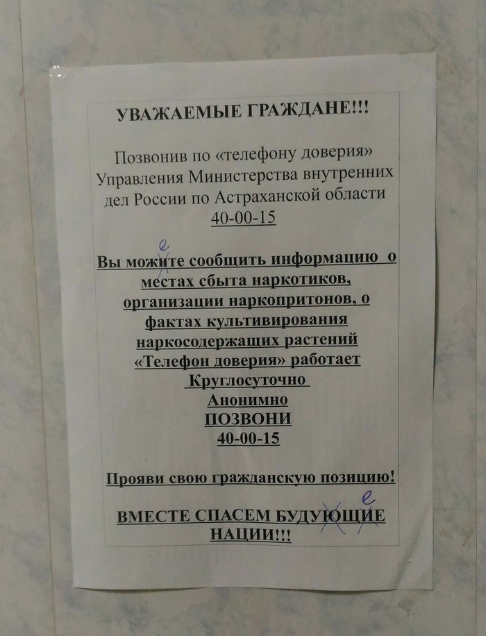 Объявление размещено в одной из астраханских поликлиник.