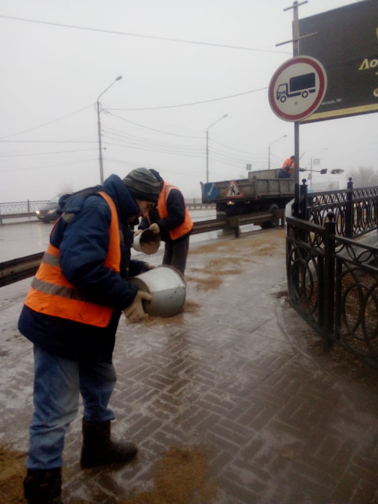 Так, около 150 сотрудников учреждения «Чистый город» с раннего утра посыпают специальной смесью тротуарные дорожки вдоль городских улиц. Аналогичную работу в парках, скверах и на набережных проводят сотрудники «Зеленого города». Более 150 специалистов посыпают пешеходные зоны в общественных пространствах.