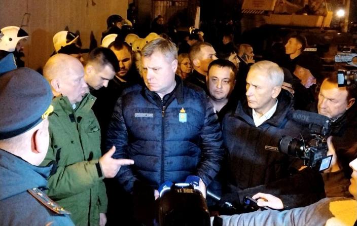 Затем замглавы МЧС и губернатор осмотрели место происшествия. Для оценки степени повреждений и мониторинга состояния здания, а также прогноза динамики дальнейшего изменения технического