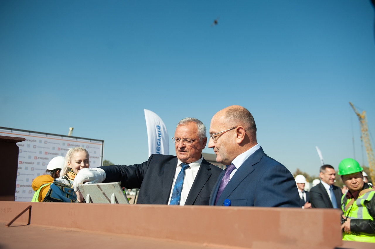 После подписания соглашения Вагит Алекперов и Сергей Морозов отправились на завод в район 3-го Интернационала. Там в торжественной обстановке прошла церемония закладки объектов обустройства Ракушечного месторождения. Объектов, собственно, пока два. Это ледостойкая стационарная платформа и платформа жилого модуля, соединенные переходной галереей. Подрядчик пообещал, что большую часть работ проделают на суше, а достройку на море постараются минимизировать.