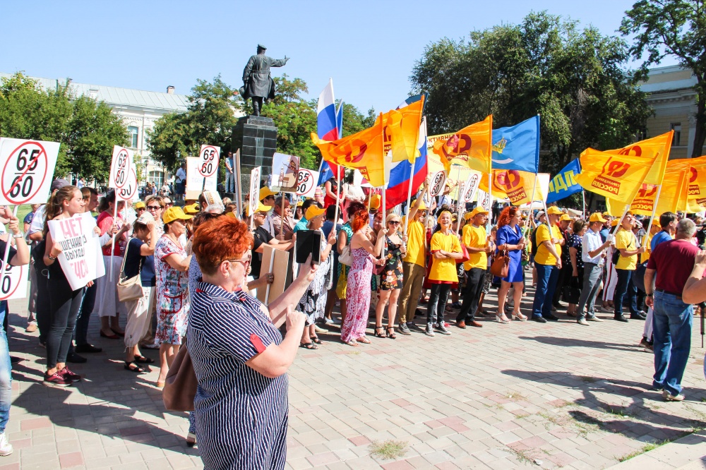 Напомним, что накануне прошло два оппозиционных митинга против повышения пенсионного возраста. Организатором первого стала КПРФ, второго «СР». Такое разделение не лучшим образом сказалось на массовости митингов: в отличие от июньской акции, в которой приняло участие свыше двух тысяч человек, здесь в общей сложности было менее полутора тысяч митингующих.«Первому секретарю обкома КПРФ