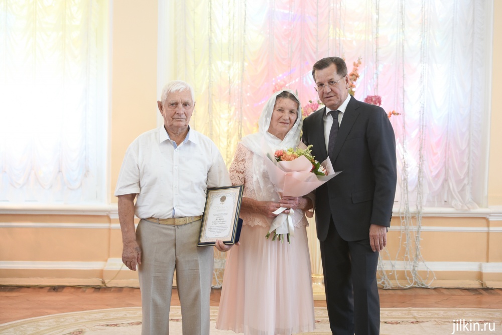 В числе награжденных медалью «За любовь и верность» - родители астраханского губернатора – Александр Петрович и Мария Ивановна Жилкины. Оба с ранних лет привыкли трудиться. Глава семьи по примеру отца и деда стал рыбаком. В море начал ходить с 12 лет. Супруга трудилась на кирпичном заводе, работала дояркой на ферме. У Александра и Марии большая семья - они воспитали четверых сыновей и двух дочерей, сейчас их окружают 14 внуков и 9 правнуков. Их союзу уже 60 лет. «Мы расписались именно в этот день – 8 июля, мы не знали тогда, что этот день станет праздником семьи», - рассказывают супруги. Главный «рецепт» семейного счастья, по словам четы Жилкиных, быть честными друг с другом, уступать и быстро мириться после ссор.