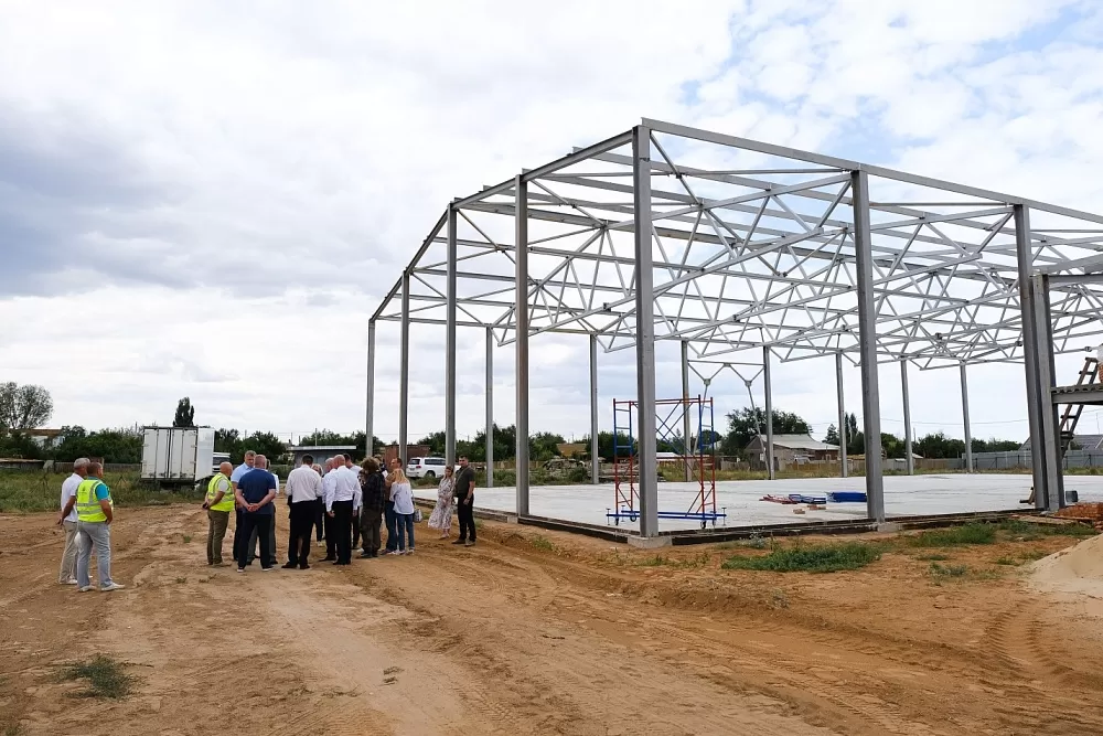 Во время поездки он осмотрел площадку в селе Енотаевка, где подрядчик возводит двухэтажный физкультурно-оздоровительный комплекс.