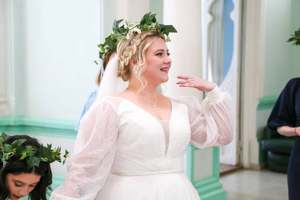 На Руси Красная горка знаменовала начало свадебного сезона. В этот день парни и девушки разжигали костры, устраивали хороводы, сватались и заключали браки. Вот и Валерия с подругами стали участниками традиционного славянского обряда, прошедшего в местном Дворце бракосочетания.