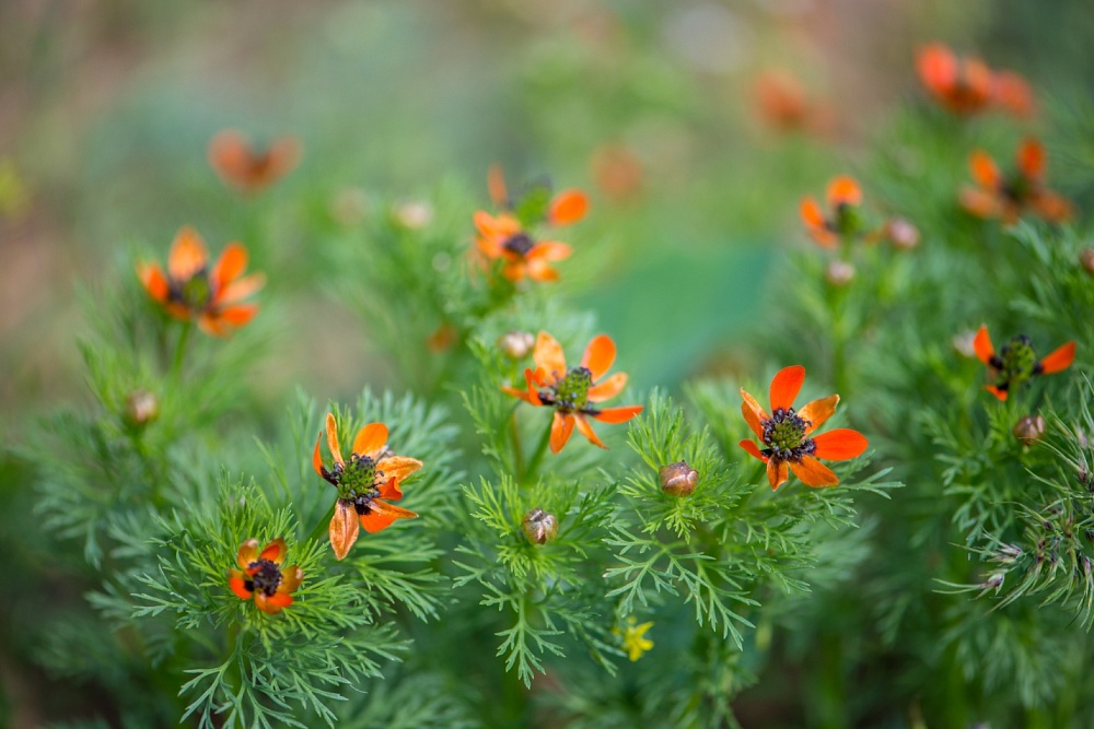 Адонис летний, или горицвет (на заглавном фото) распускается далеко не каждую весну. Массовое цветение адонисов я наблюдал лишь несколько раз, обычно можно найти лишь один-два небольших, но ярких цветка, а в засушливые годы их и вовсе нет. Адонис летний занесен в Красную книгу Астраханской области.