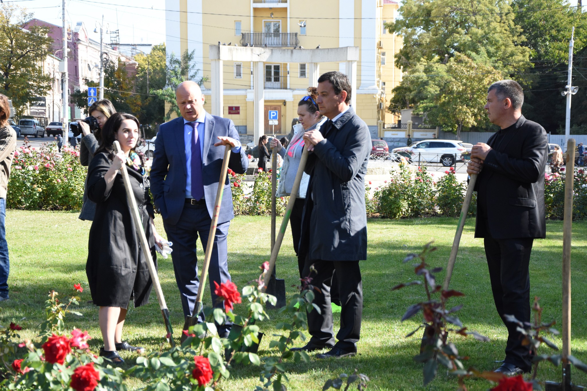 Сегодня глава Астрахани Алена Губанова и руководитель горадминистрации Олег Полумордвинов высадили новые розы на площади Ленина.