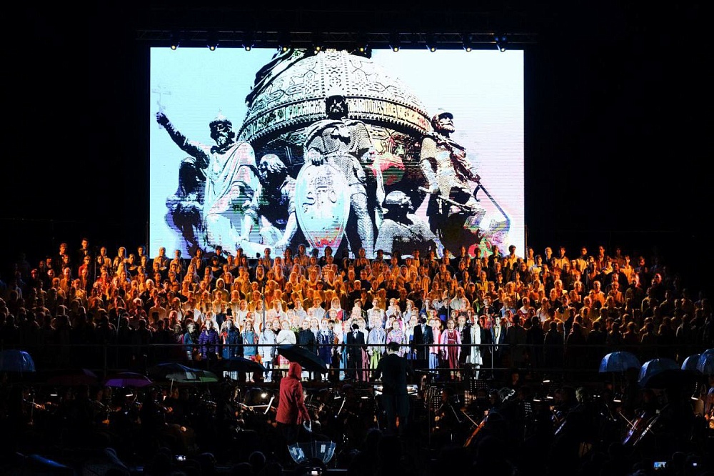 В нём примут участие сводный хор фестиваля, симфонический оркестр Астраханского театра оперы и балета, солисты и дирижёры. В программе концерта – песни и стихи о России.