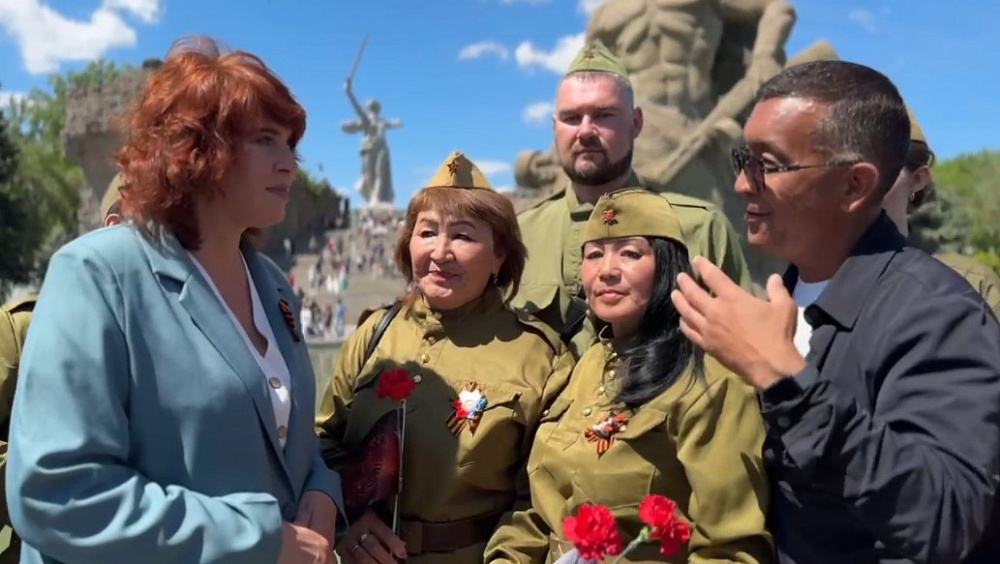 Завершающим стало выступление в городе-герое Волгограде, куда артисты центра приехали, чтобы поздравить участника парада Победы Александра Колотушкина. После посещения ветерана астраханцы выступили на Мамаевом Кургане, где в это время вела репортаж в прямом эфире корреспондент Первого канала Елена Пич.