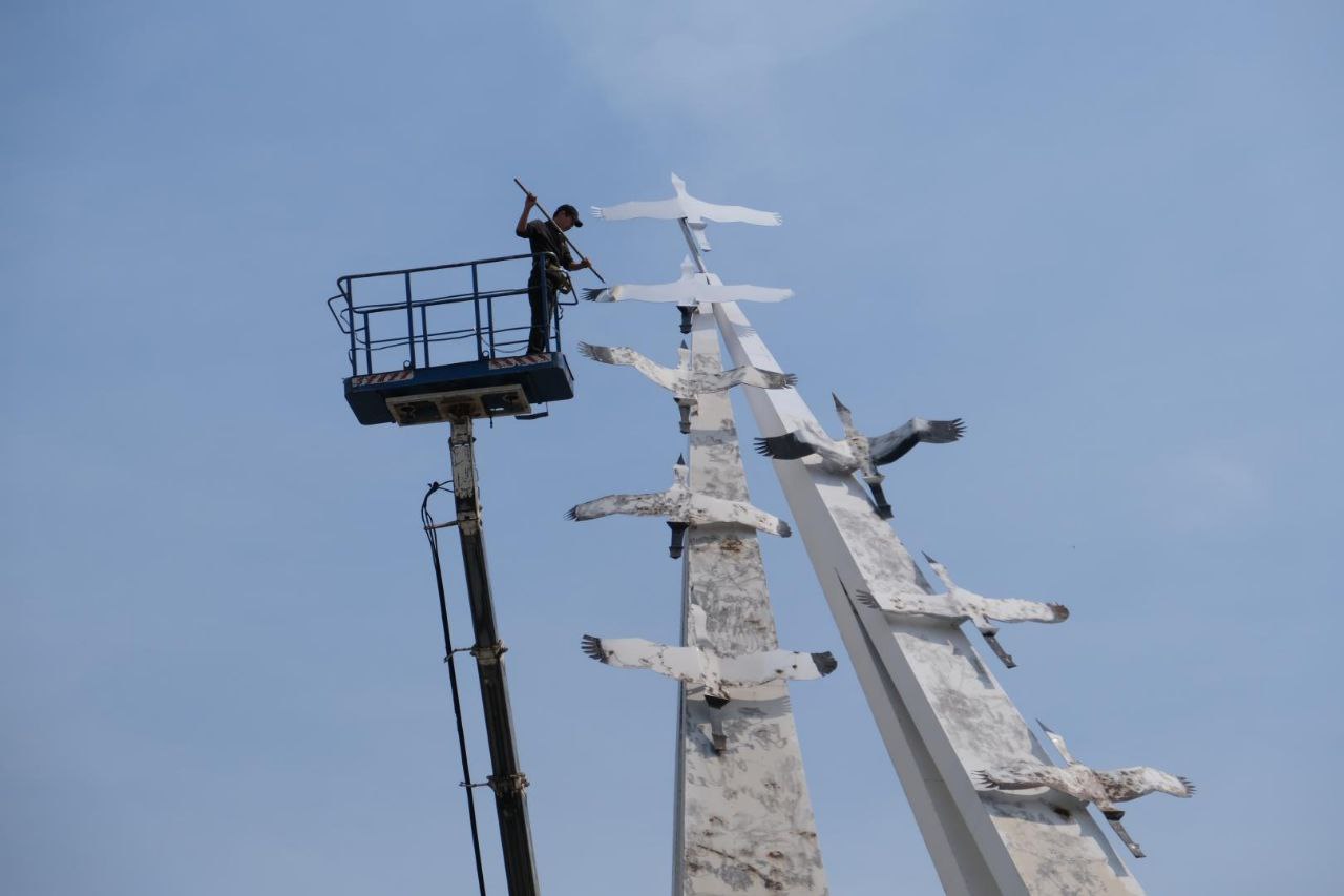 Сейчас идет работа в сквере Победы, где обновляют памятник «Журавли». Также будет покрашена «Звезда», расположенная рядом. Параллельно вазоны заполняют цветами. Аналогичные работы ведутся по всему городу: ранее коммунальщики потратили 50 кг краски, чтобы обновить танк и пушки.