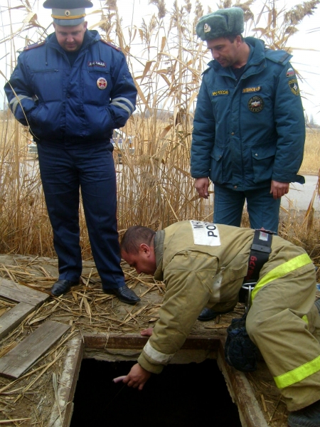 Вчера, 18 ноября, утром, патрулируя дорогу около полигона неподалёку от Знаменска, инспекторы ДПС услышали странный звук, исходивший из камышей.Там находился колодец с коммуникациями, в котором жалобно выла собака, упавшая вниз. Глубина колодца не позволяла залезть туда самостоятельно, поэтому стражи порядка вызвали сотрудников МЧС. До их приезда полицейские накормили животное своим обедом.