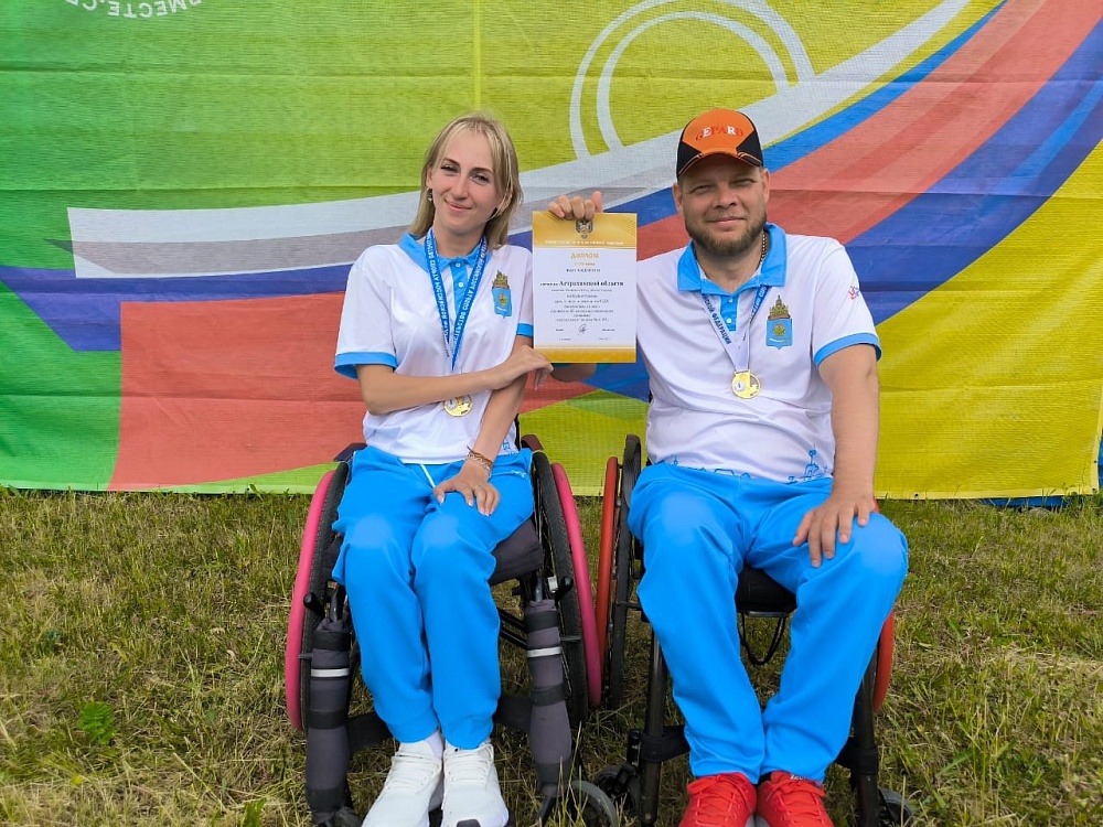 Команда астраханцев, среди которых Юлия Распопова и Алексей Леонов, завоевали золото в дисциплине смешанных командных соревнований на 50 метров.