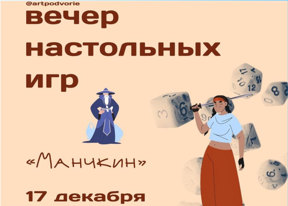 17 декабря астраханцев приглашают в арт-пространство Подворье, где состоится открытый и бесплатный вечером для всех любителей настолок. Организаторы предложат сыграть в «Манчкин».