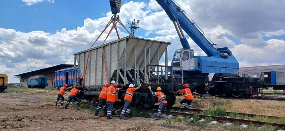 Сегодня на станции Кутум в Астрахани состоялись учения по отработке действий при сходе грузового вагона. В них участвовали сотрудники восстановительного поезда №1 станции Астрахань-2 и других железнодорожных предприятий. Всего – около 50 человек.