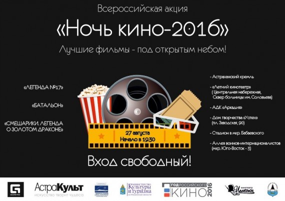 К акции присоединились учреждения культуры Астраханской области: перед всеми показами в 19.30 астраханцам и гостям города будут представлены развлекательные программы.