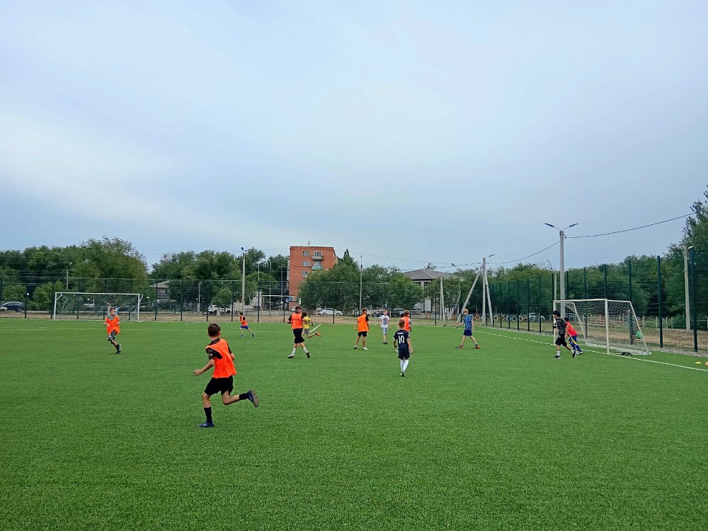 На футбольном поле спортивной школы № 1 (ул. Парковая 16а, микрорайон 3-й Интернационал) инструктор по спорту проводит занятия по футболу. На тренировку, которая прошла 3 июля, пришли более 20 человек.