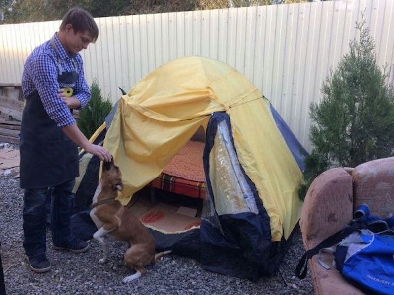 25-летний Георгий Карпенков воспитывался в детском доме. После выхода из приюта сирота оказался на улице – ему пришлось бродяжничать девять лет. По закону астраханец должен был получить квартиру, однако бумажная канитель тянулась бесконечно, и чиновники не спешили предоставлять жильё. Именно владелец магазина, предоставивший парню рабочее место и территорию на заднем дворе магазина для размещения палатки, помогает ему разрешить вопрос предоставления жилья, привлекая СМИ и общественное внимание к проблеме.
