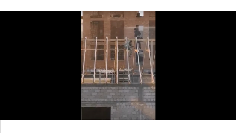 На кадрах видно, как двое кровельщиков явно не под страхом смерти работают над строительством здания на ул. Бакинской. При этом на высоте нескольких этажей строители трудятся без страховочных тросов. Они залезли на деревянные балки и спокойно продолжали работать, чего не скажешь о местных жителях, которые явно не могут смотреть на "трюки" хладнокровно.