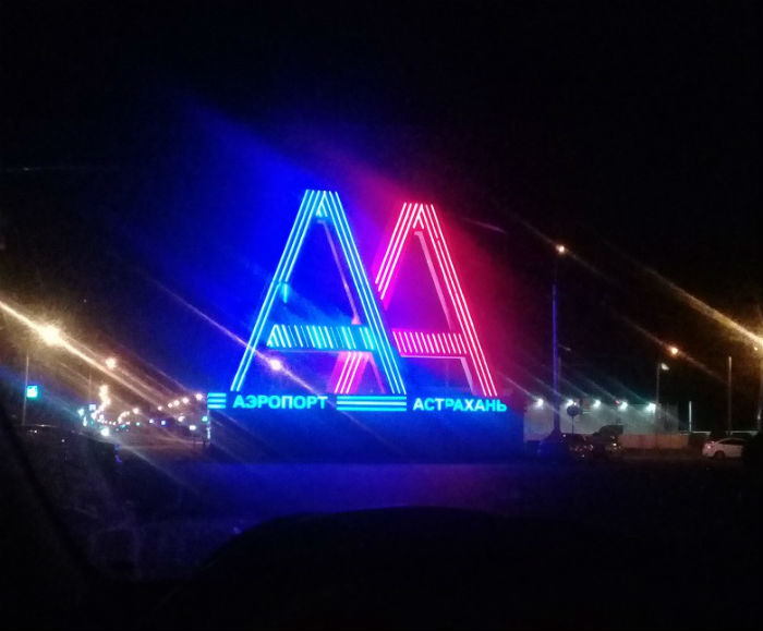 По словам очевидцев, подсветка букв не работает уже несколько дней. Тут, получается, по мнению местных жителей, варианта два: либо надпись на данный момент ремонтируется, либо она претерпевает те самые изменения, которые многие ждут уже несколько месяцев. Там появится дополнение: "Аэропорт им. Кустодиева".