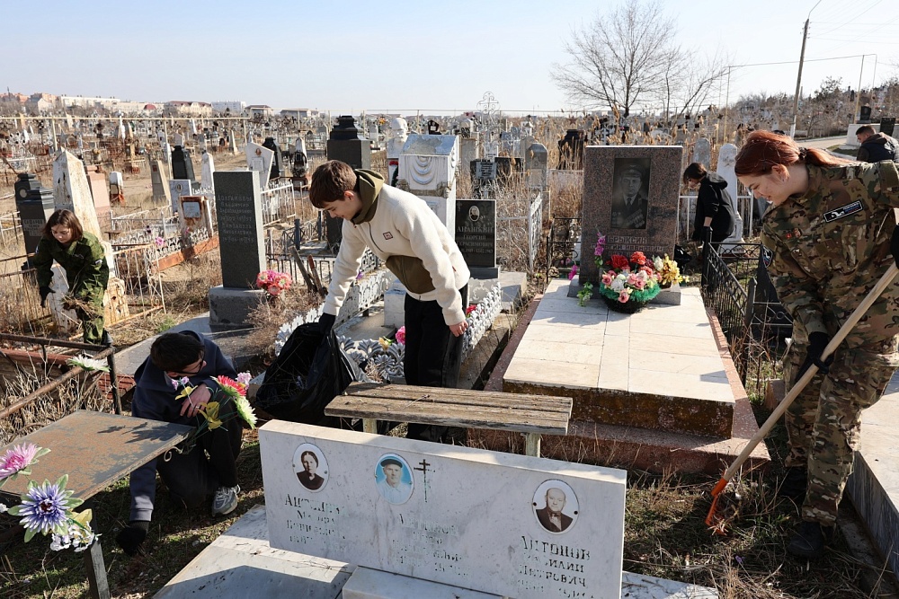 Активисты Бессмертного полка России, поисковых отрядов «Патриот» Колледжа АГУ, «Следопыт» и «Горизонт» Астраханского государственного колледжа профессиональных технологий, а также преподаватели и студенты политехнического колледжа приняли участие в субботнике.