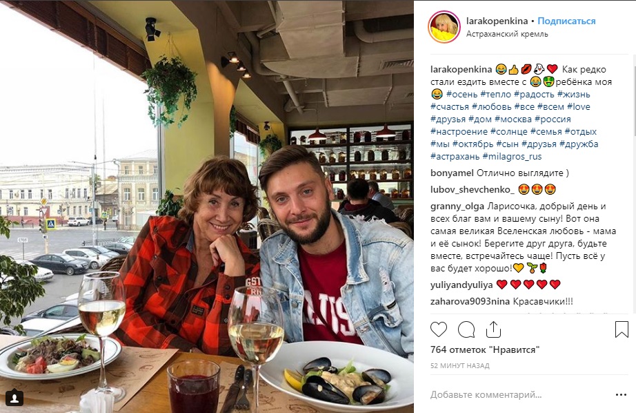 В Астрахань приехала первая жена выпускника "Фабрики звезд" Прохора Шаляпина Лариса Копенкина. Она опубликовала на своей странице в социальной сети снимок, сделанный в одном из кафе в ТЦ "Кристалл".