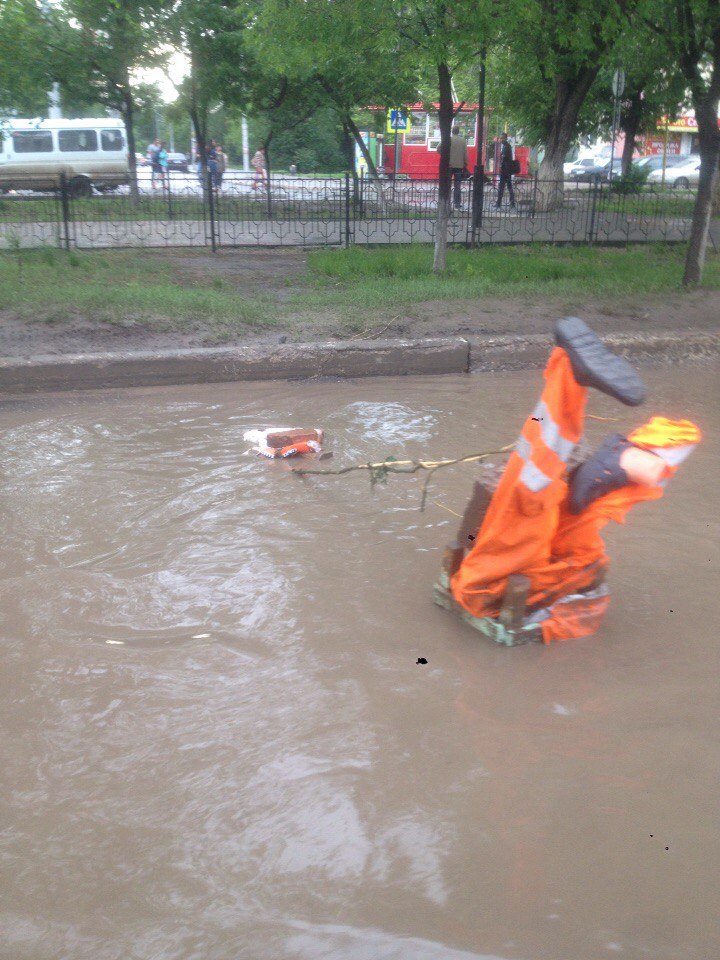 Астраханские автомобилисты обладают неплохим чувством юмора, что они вчера в очередной раз доказали, установив в яме возле остановки «Кинотеатр «Призыв» на ул. Савушкина шуточный «памятник», дорожным рабочим, павшим на дорогах Астрахани.