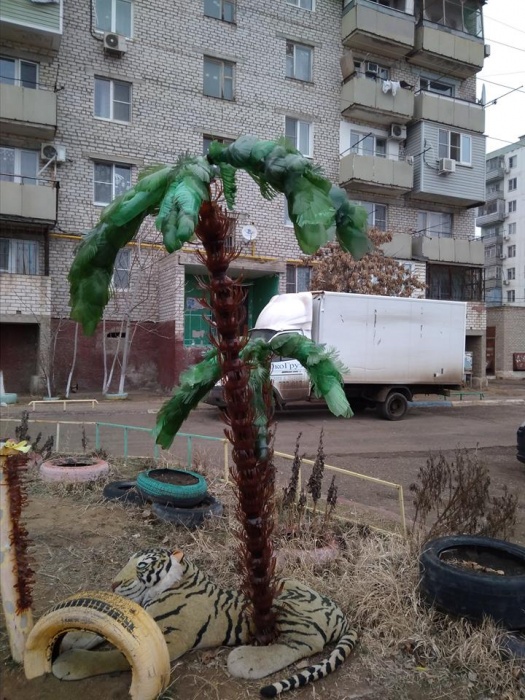 Правда, отметившихся в комментариях астраханцев куда больше заинтересовал не наглый водитель грузовика, а антураж астраханского дворика. Неравнодушные жители решили облагородить скучный пейзаж и установили во дворе пальму, возле которой гордо восседает тигр.
