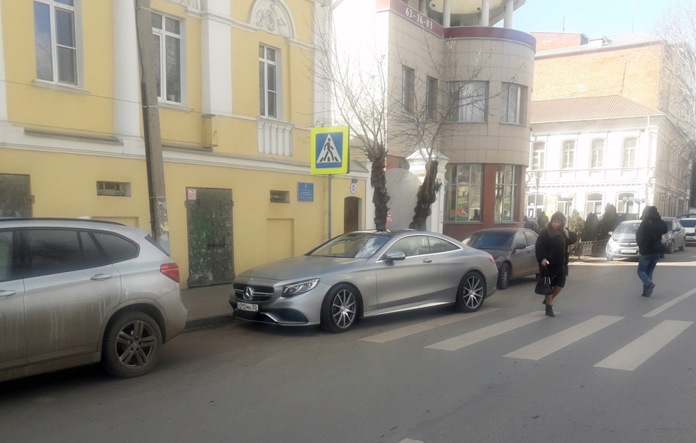 Около Моста влюбленных иномарка припарковалась прямо на пешеходном переходе, чем и вызвала бурную реакцию у местного окружения.