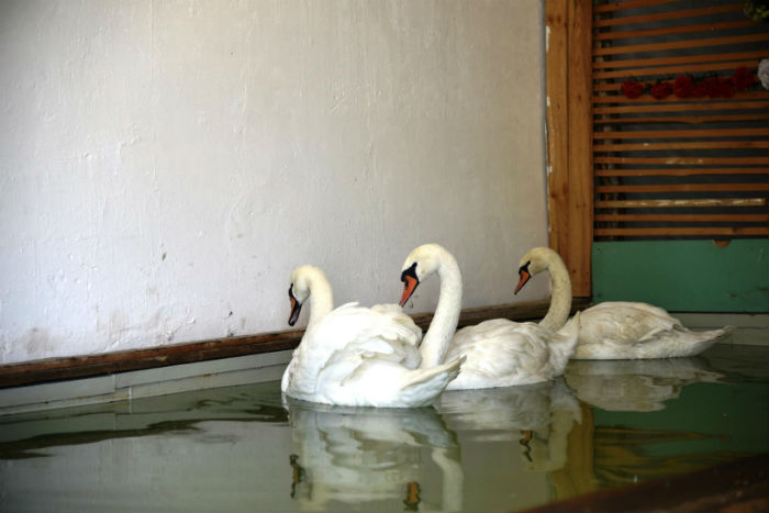 Здесь же в тепличном хозяйстве, в специальном бассейне, зимуют питомцы лебединого озера. За птицами ухаживают сотрудники предприятия, кормят трижды в день свежими овощами, фруктами, зерном, дают витамины. Регулярно проводятся осмотры птиц ветеринарами. Весной лебедей выпустят обратно на озеро.