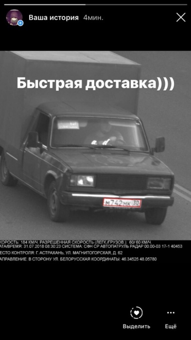 В группе "Аварии Астрахань" пользователь рассказал о том, что его хлебовозке камеры выписали штраф за существенное превышение скорости. При этом техника показала, что автомобиль гнал 184 км/ч. Хотя в данной ситуации разобрать, кто именно "гонит", не очень сложно.