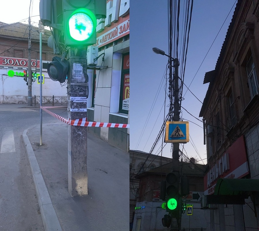 На улице Свердлова кусок шифера свесился прямо над пешеходной зоной.