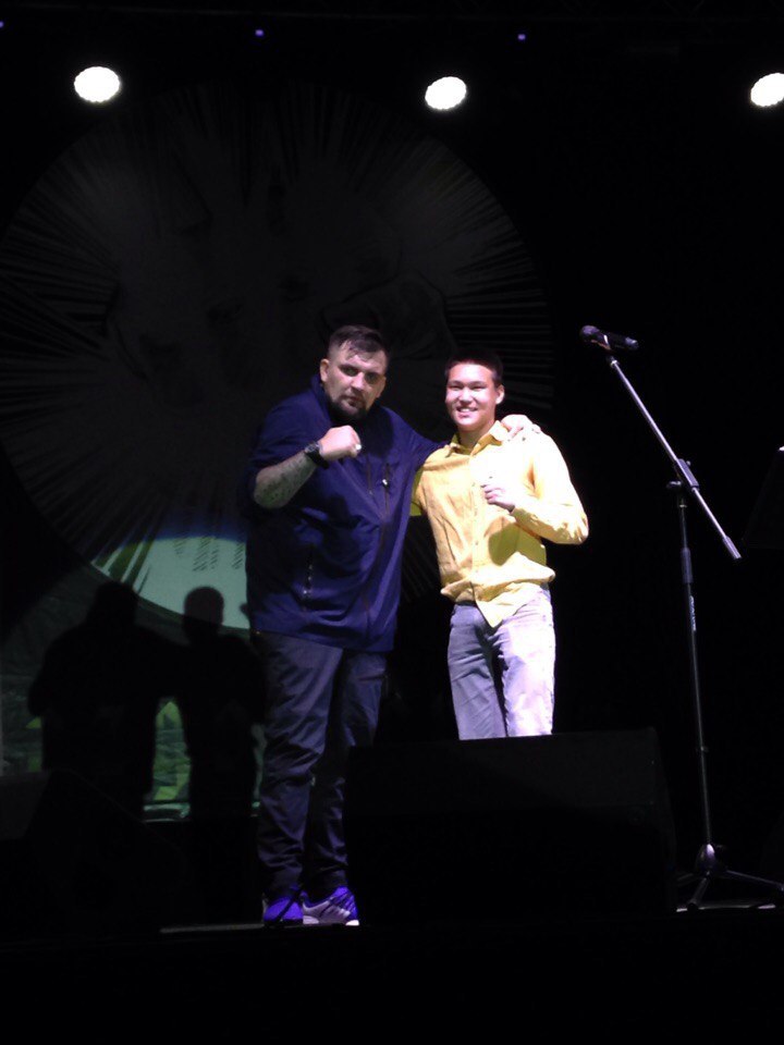 Певец позвал юношу из фан-зоны на сцену, подав руку, где он и провел часть концерта, пообщавшись с солистом и остальными музыкантами. Перед уходом Азамат, так звали парня, сделал фото с Бастой на телефон, пишут наши .