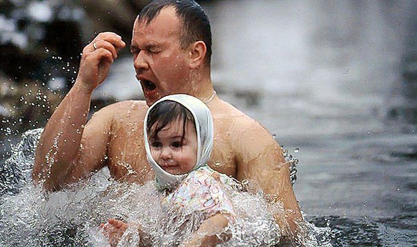 В Крещенский сочельник совершается великое водоосвящение, во время которого происходят массовые купания в водоемах.