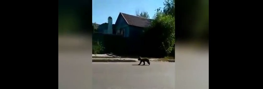 Косолапого сняли на улице Маркина. По словам очевидца, животное выбежало из-за угла одного из домов и едва не попало под машину, перебегая дорогу.