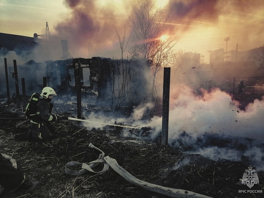 В Трусовском районе на общей площади 80 кв. метров вспыхнули одноэтажный многоквартирный жилой дом и сарай по соседству.