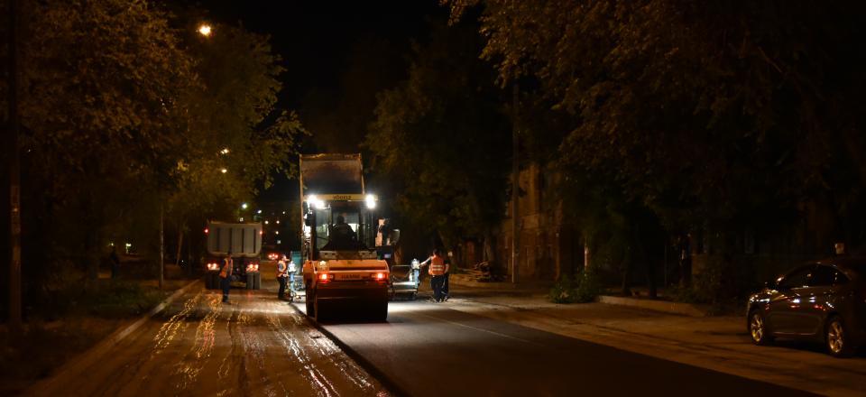 Ночью в среду укладывали верхний слой асфальтобетона от улицы Адмиралтейской до улицы Победы. Вчера в ночь подрядчик продолжил укладку асфальта уже от улицы Победы до Красного моста, чтобы затем перейти к работам на противоположной стороне.