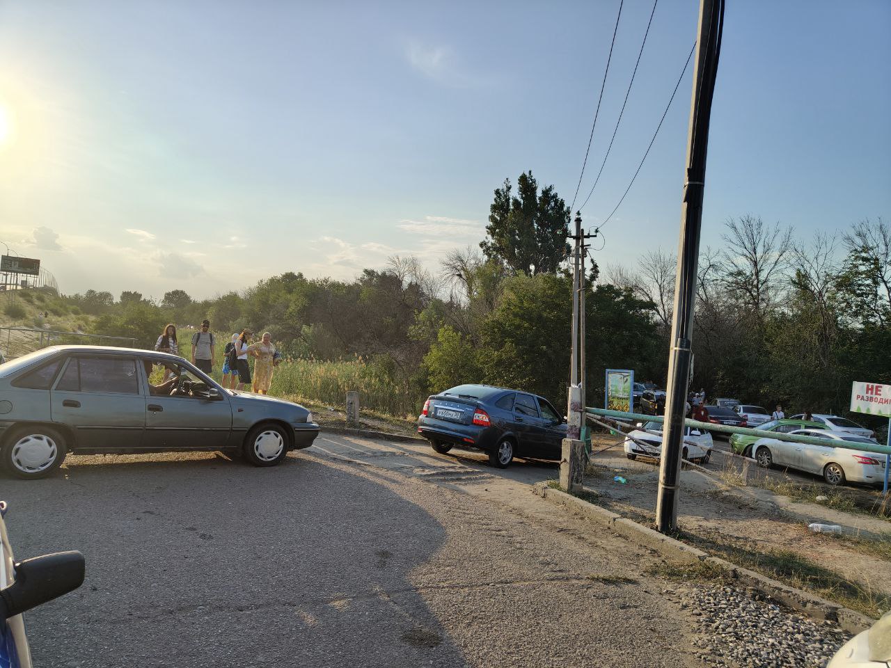 На Городском острове в Астрахани аншлаг: не только из купальщиков, но и из автомобилей.