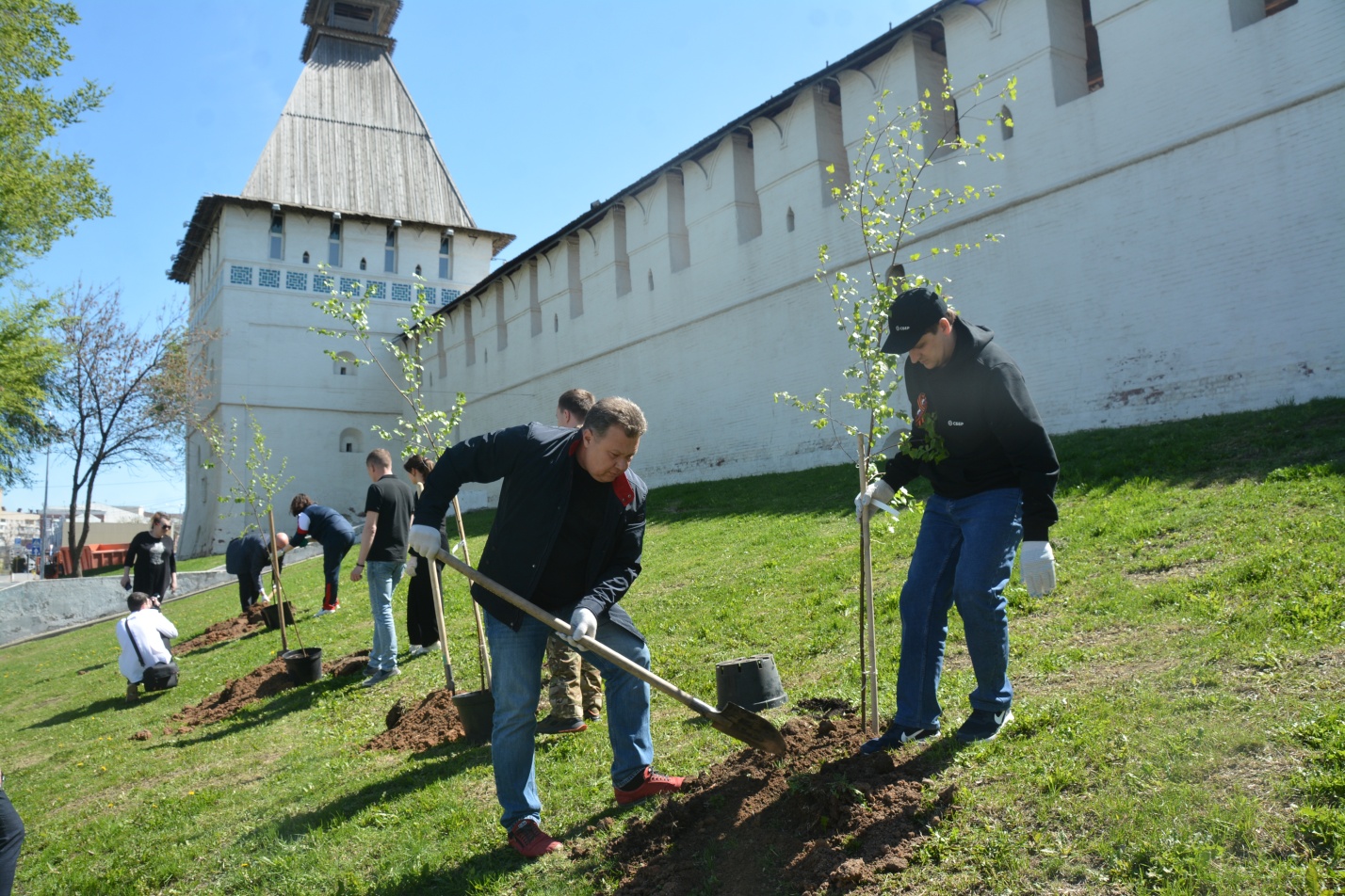 С помощью специального оборудования помыли памятник и тротуарную плитку. Покосили откосы кремля со стороны улицы Адмиралтейской. И высадили на откосе 20 берез.