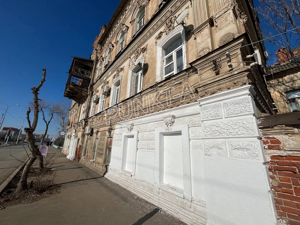 «Мало того, что каким-то абсолютно кустарным образом, словно пришив заплатку, часть фасада выкрасили в белую краску, так ещё и некий «предприниматель» забил 2 оконных проема на первом этаже и встроил в один из них автомат по продаже воды. Стоит отметить, что состояние всего дома вызывает вопросы».