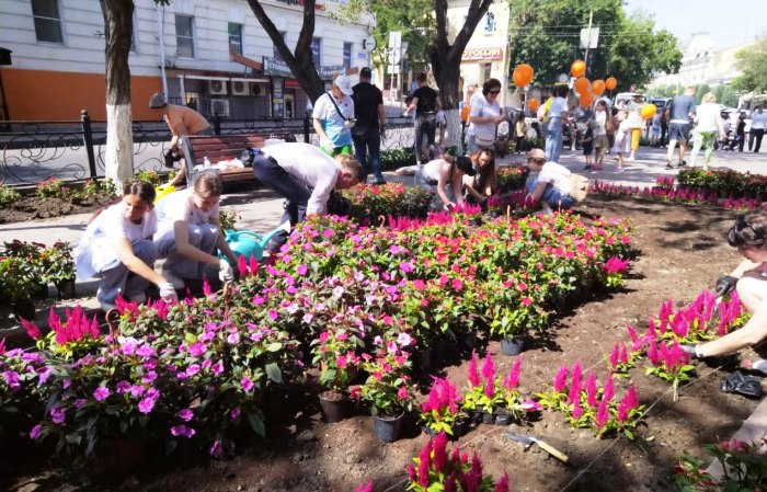Суть в том, что цветы приобрел неравнодушный предприниматель Александр Перов, высаживали их волонтеры, юнармейцы и простые горожане. Присоединиться к акции мог каждый – всем желающим раздавали перчатки, инвентарь и посадочный материал.