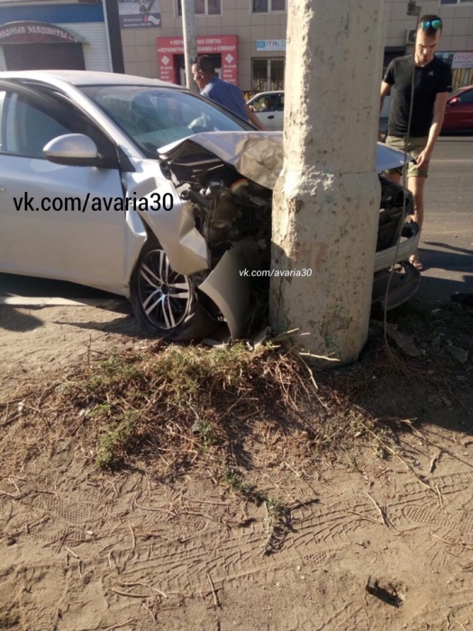 Как сообщают очевидцы в паблике «Аварии Астрахань», на ул. Боевая, между магазином «Добрострой» и ТРЗ, автомобиль врезался в бетонный столб.