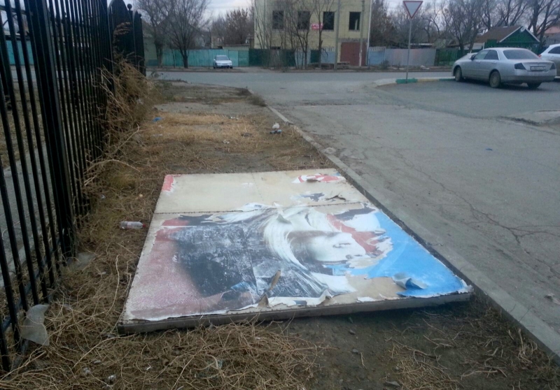Прибывшие на место сотрудники полиции обнаружили неподалёку лежащий на земле фрагмент рекламного щита.