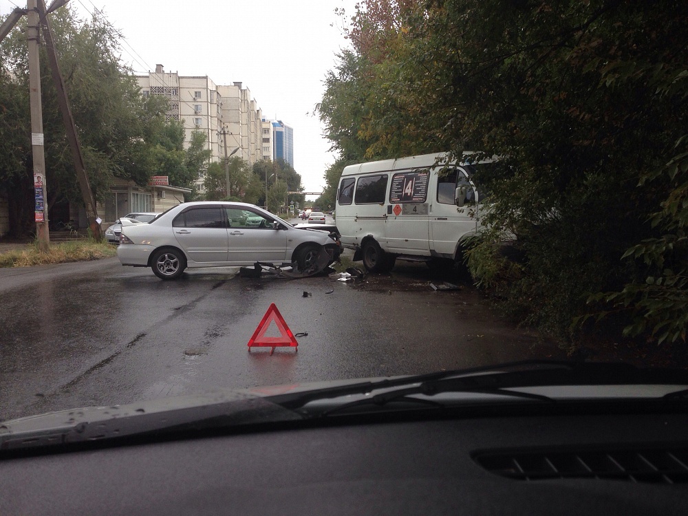Сегодня в тематическом сообществе "Аварии Астрахань" в социальной сети ВКонтакте подписчик выложил фото ДТП с участием маршрутного такси №4 на ул. Полякова.
