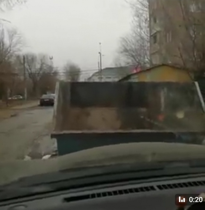 Подслушано Астрахань". Все бы ничего, но помойка находится прямо посередине проезжей части. Оператор на своем примере показывает, как водитель может невзначай врезаться в этот контейнер, скажем, ночью.