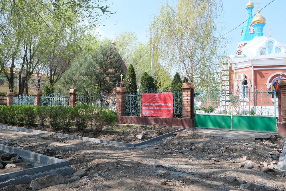 Улицу Агрономическую ремонтируют в рамках нацпроекта «Инфраструктура для жизни». Сейчас здесь ведется замена бордюров, следующим этапом будет снятие старого покрытия на проезжей части дороги и укладка покрытия на тротуаре. На улице Агрономической расположены не только храм, но и школа №61 и детский сад при ней.