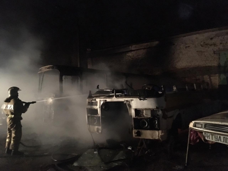 "ПАЗ" вместе с гаражом сгорел в Ленинском районе на ул.3-й Зеленгинской,56.