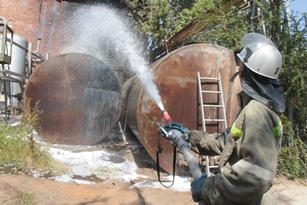 Огонь с загоревшейся цистерны с химикатами перекинулся на кровлю близ стоящего двухэтажного кирпичного производственного цеха - компрессорную.